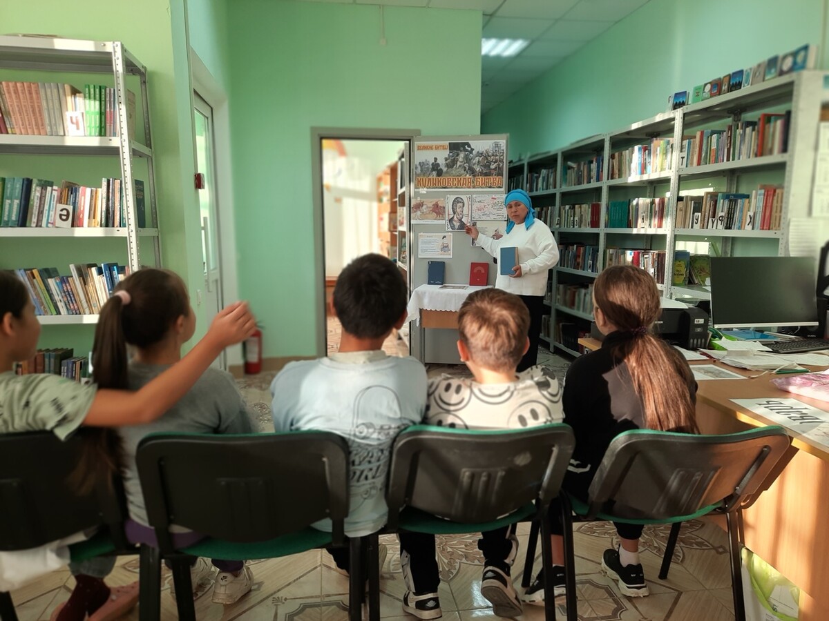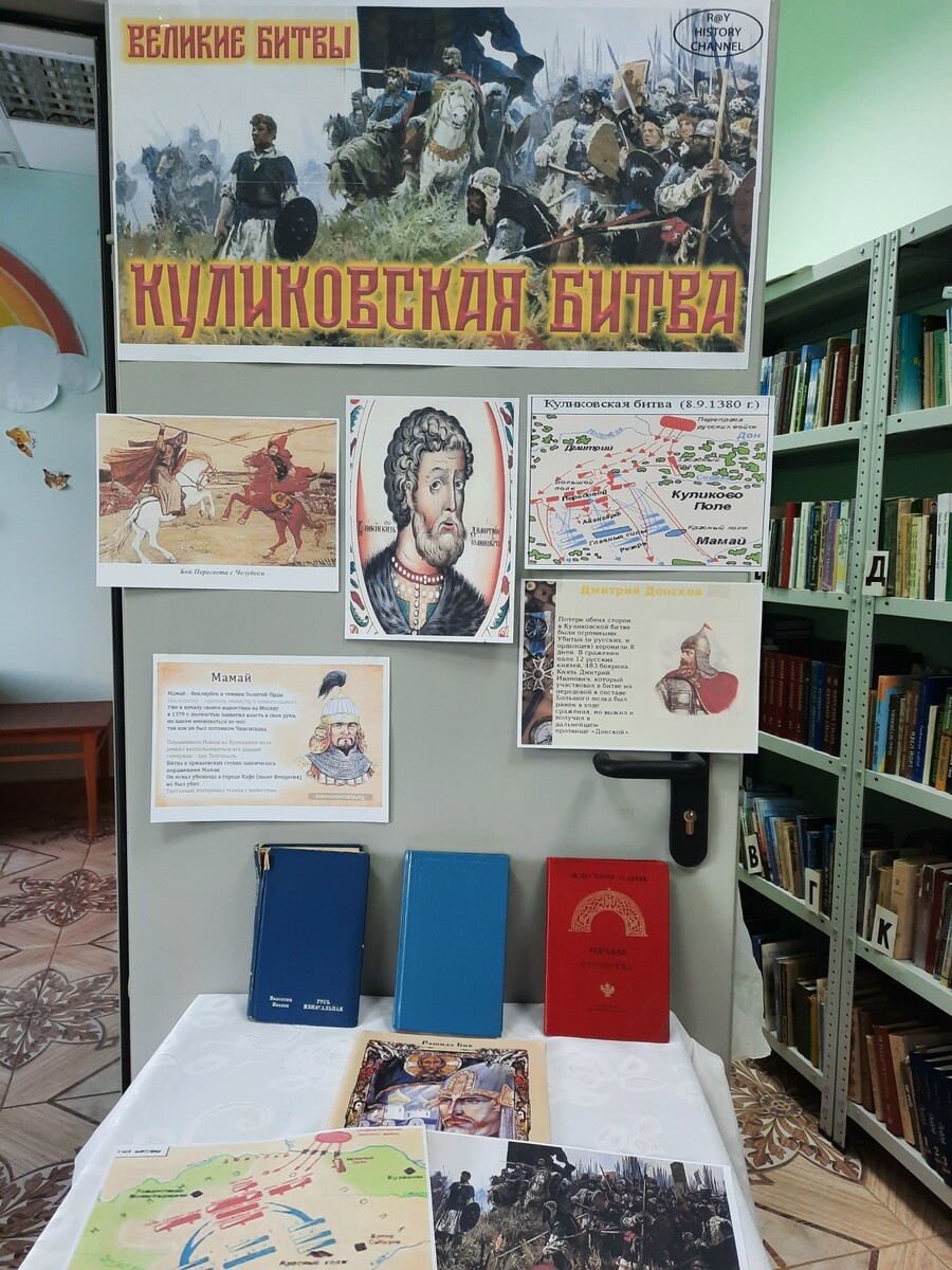 В сентябре 2025 года отмечалась знаменательная дата одного из крупнейших сражений России - 645–летие Куликовской битвы. В память о народном подвиге в библиотеке была организована для детей беседа «Поле русской славы», посвященное этой дате. Библиотекарь ознакомила с краткой историей Куликовской битвы и их героями, познакомила с информационной выставкой, где большой интерес вызвал раздел выставки «Куликовская битва в изображении русских художников» (битва Пересвета с Челубеем). Также дети участвовали в викторине «По следам мужества и стойкости».